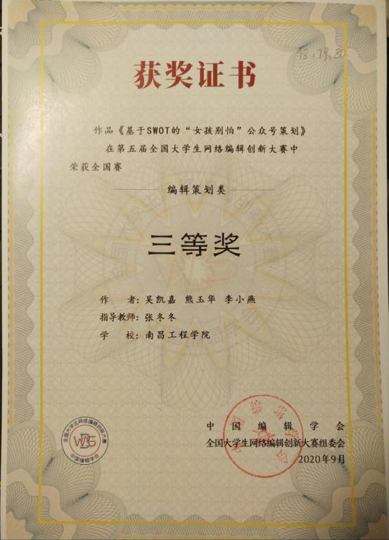 第五届全国大学生网络编辑创新大赛华东赛区三等奖