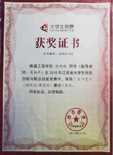 2018年江西省大学生科技创新与职业技能竞赛 广告与艺术(影视类)三等奖