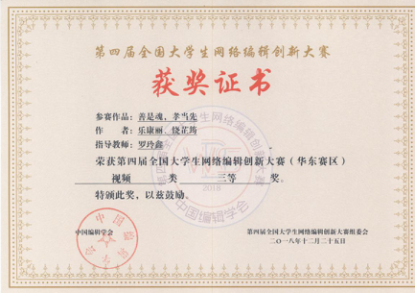 第四届全国大学生网络编辑创新大赛华东赛区三等奖