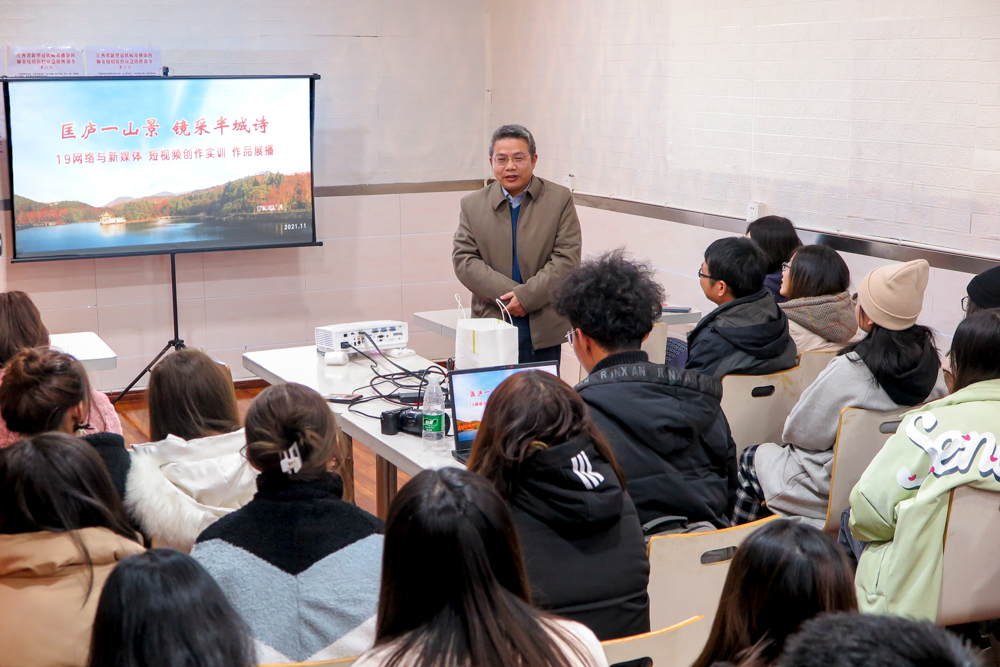 11月27日上午,校纪委书记殷安全来到人文与艺术学院教学一线,与19网络与新媒体专业学生一同前往庐山东谷含鄱口进行拍摄活动,人文与艺术学院院长张朝霞等相关人员随行。