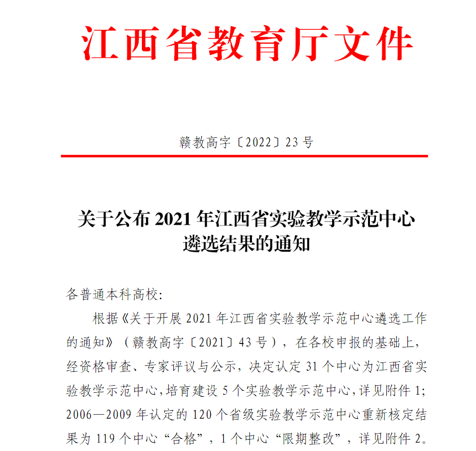 近日,江西省教育厅发布《关于公布2021年江西省实验教学示范中心遴选结果的通知》,我院“现代传媒实验中心”被认定为江西省实验教学示范中心。